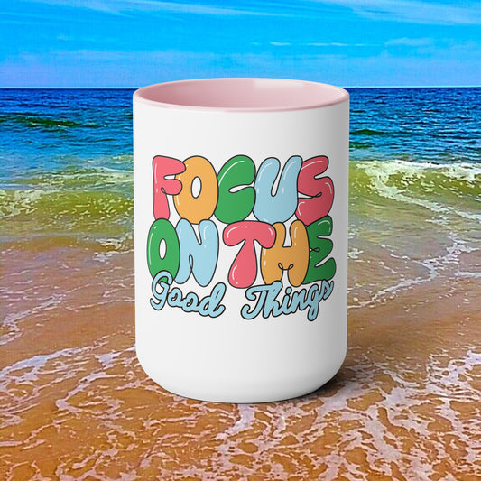 Two-Tone Focus on the Good Stuff Coffee Mugs, 15oz