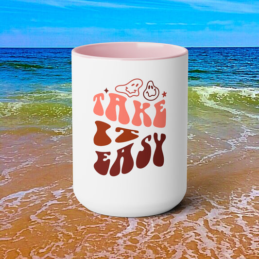 Two-Tone Take It Easy Coffee Mugs, 15oz