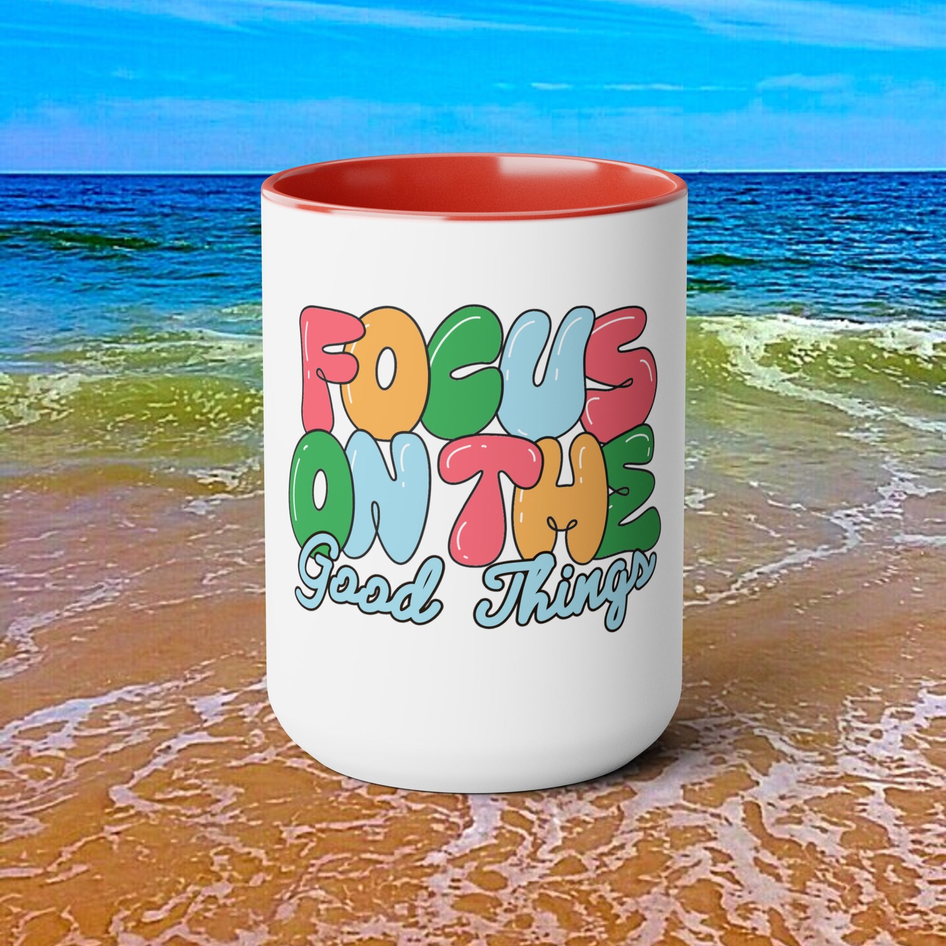 Two-Tone Focus on the Good Stuff Coffee Mugs, 15oz